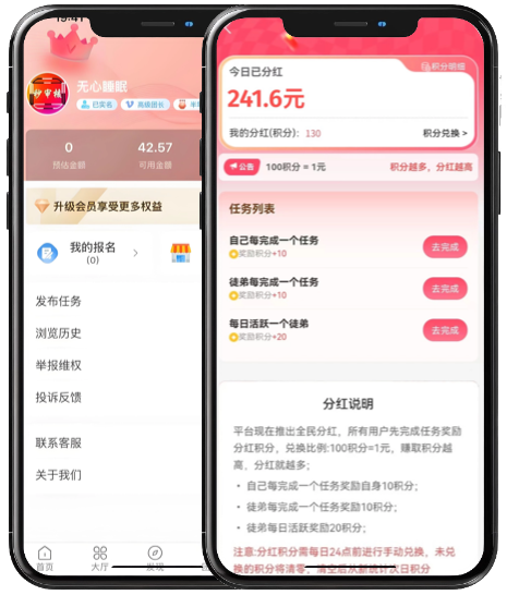每天空闲时间接取完成悬赏任务即可赚取丰厚利润,每天海量任务等您来做!邀请好友加入,让您不劳而获!